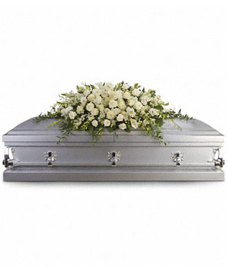 One way to show support is by sending our Purity and Peace Casket Spray flower arrangement, a stunning and dignified tribute to the departed. This bouquet features white roses, orchids, hydrangea, calla lilies, and trailing greens that not only honor the deceased but also provide hope, positivity, and empathy to those in mourning.